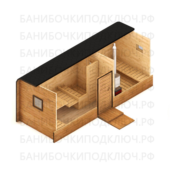 Баня парус 6 x 2,3 м с проходной мойкой